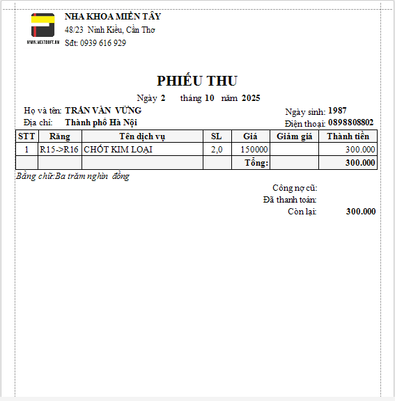 Phiếu thu điều trị