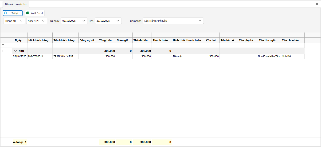 Báo cáo doanh thu