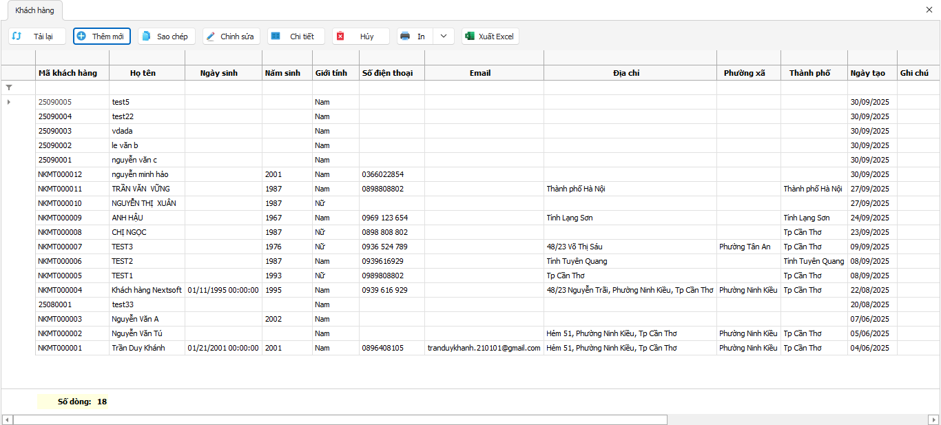 Báo cáo danh sách khách hàng
